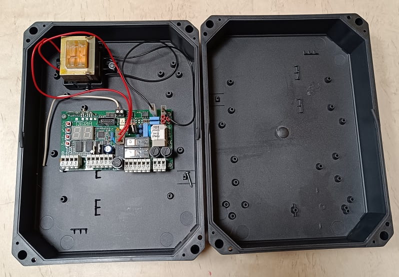 Centrala mikroprocesorowa Proteco Q60A do bram skrzydłowych - z wyświetlaczem i obudową, bez odbiornika radiowego.