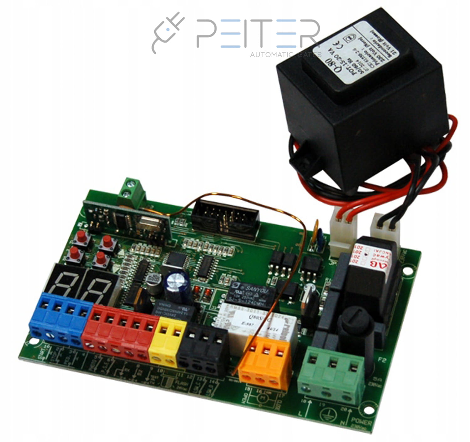 Centrala Proteco Q80S do bram przesuwnych z wyświetlaczem i wbudowanym odbiornikiem radiowym 433,92 MHz.