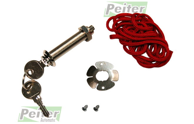 Odblokowanie do bram garażowych stosowane w przypadku awarii prądu w celu wysprzęglenia napędu z zewnątrz.