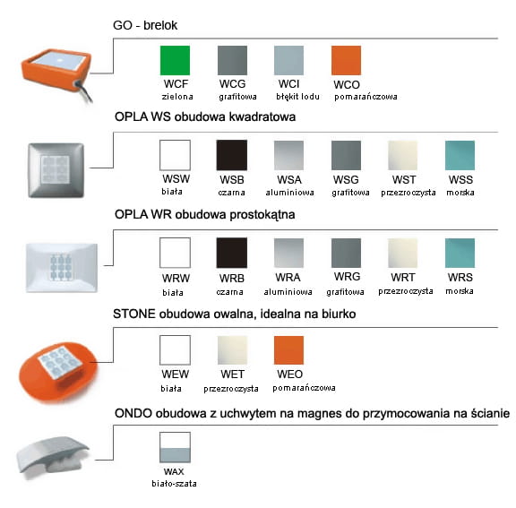 - obudową łukową ONDO (WAX) z możliwością mocowania do ściany (WWW)