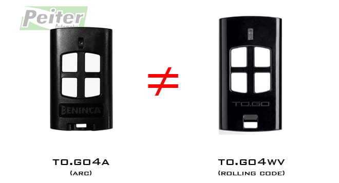 Uwaga! TO.GO4A nie jest kompatybilny z podobnie wyglądającym pilotem Beninca TO.GO4WV. Proszę spojrzeć na porównawcze zdjęcie z galerii.