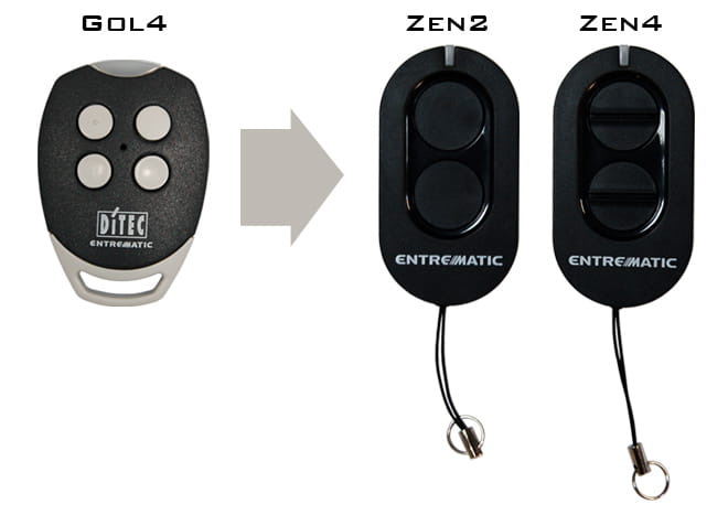 Piloty ZEN2 i ZEN4 mogą być stosowane zamiennie z pilotami Ditec BIXLG4, BIXLP2 oraz GOL4.