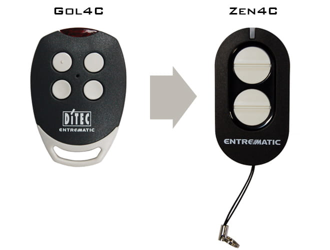 Piloty ZEN2C i ZEN4C mogą być stosowane zamiennie z pilotami Ditec BIXLS2 oraz GOL4C. Nie są natomiast kompatybilne z modelem GOL4, który wyglądem bardzo przypomina model GOL4C. Proszę spojrzeć na załączone zdjęcie.
