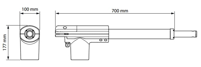 TOO3000 teleskopowy siłownik, silnik 230 V, do skrzydła do 3,0 m długości i ciężarze do 300 kg.