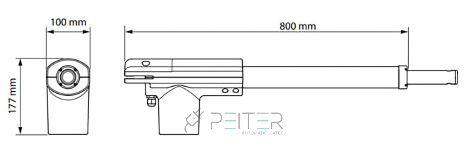 TOO4500 teleskopowy siłownik, silnik 230 V, do skrzydła do 4,5 m długości i ciężarze do 250 kg.