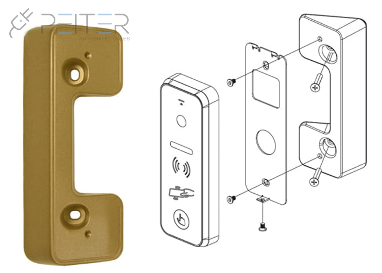 W zestawie znajduje się również uchwyt kątowy do zamontowania panelu rozmównego oraz moduł NC05 do sterowania automatyką do bram.