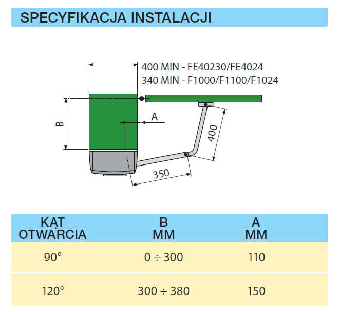 Przeznaczony jest do skrzydeł o długości do 4 m i bram z maksymalną odległością pomiędzy zawiasem i krańcem słupka do 38 cm.