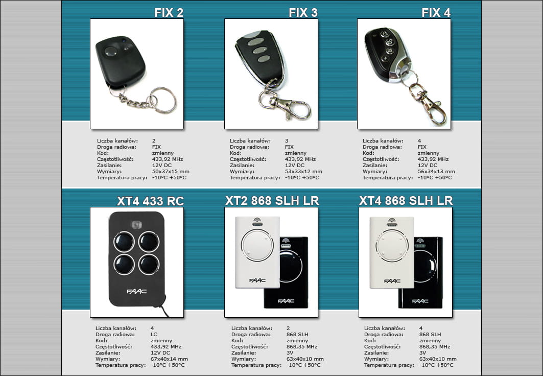 - Odbiornik radiowy 433 lub 868 MHz (w zależności od wybranego pilota)