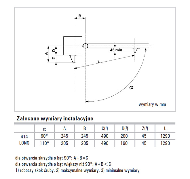 - 1 siłownik 414 LONG z elementami mocującymi