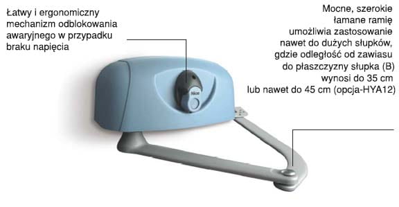 - Siłowniki NICE Hyppo HY7005 (2 szt.)