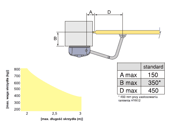 Zestaw do bram dwuskrzydłowych przeznaczony do stosowania na szerokich słupkach, dla skrzydła o długości do 3m.