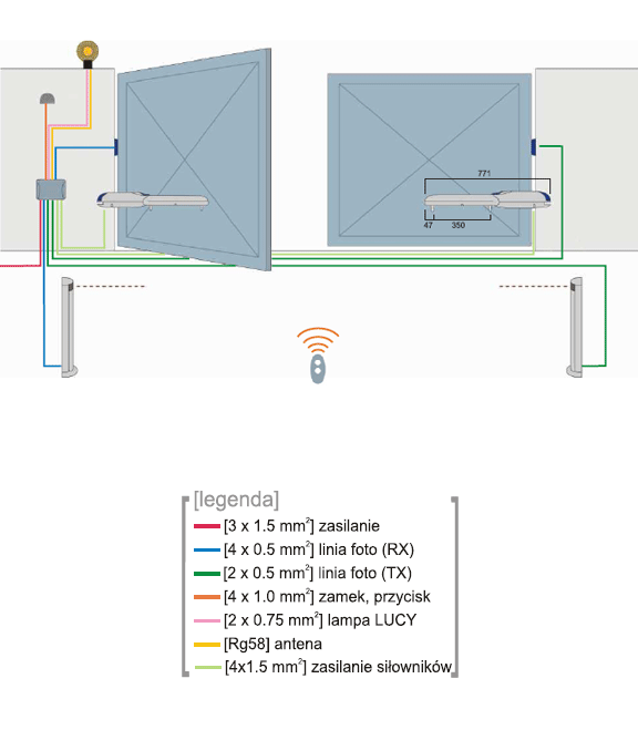 Istnieje możliwość przekonfigurowania zestawu według Państwa potrzeb: można dokupić dodatkowe piloty oraz inne akcesoria np. lampę ostrzegawczą.