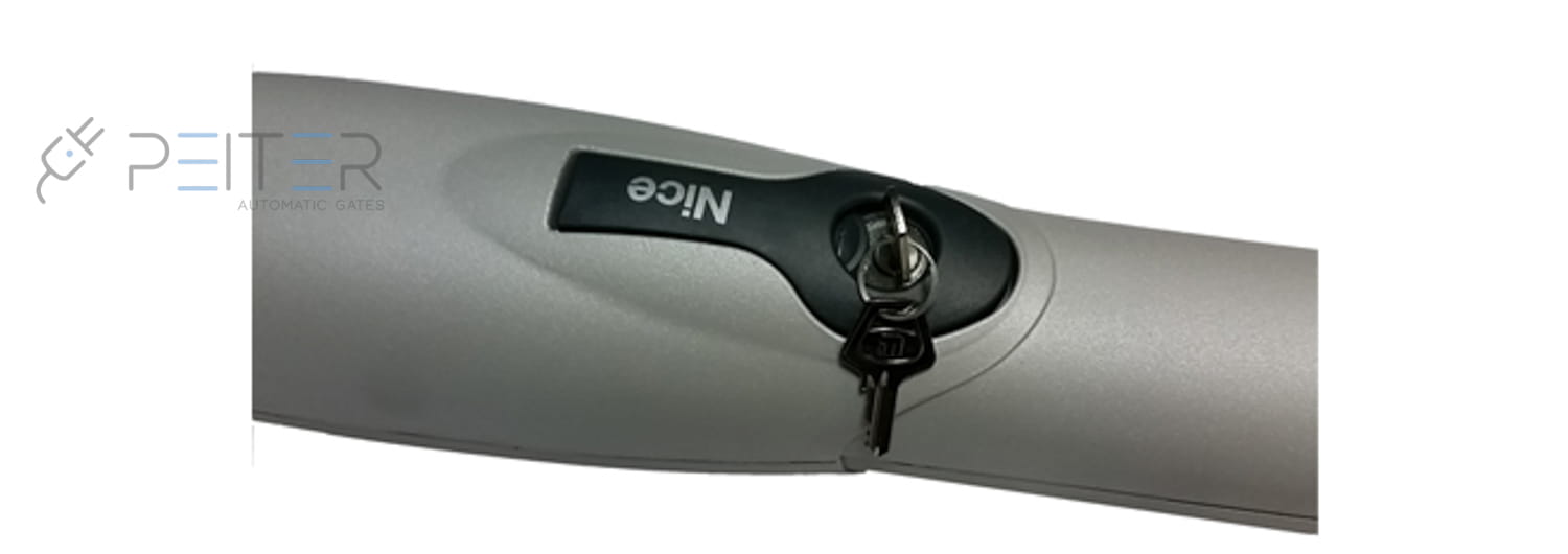 Model WINGO 5000 firmy NICE to popularny, uniwersalny siłownik wyposażony w wyłącznik krańcowy na otwieraniu, przeznaczony do automatyzowania bram skrzydłowych o sile ciągu 1700 N, długości skrzydła nie przekraczającej 3,5 m oraz ciężarze skrzydła do 200 kg. W razie braku zasilania wygodny, prosty cylinder z kluczem umożliwia awaryjne wysprzęglenie bramy.