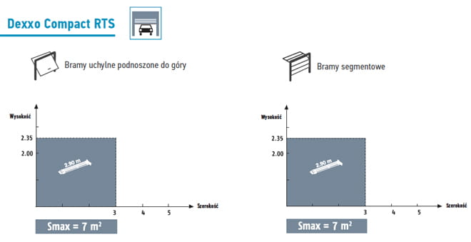 Zestaw Somfy DEXXO COMPACT RTS do bramy garażowej o maksymalnej powierzchni 7 m2.